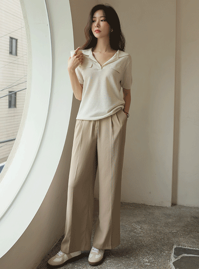 Summer Daily Pintuck Back Banding Slacks