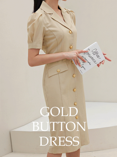 Pintuck Puff Gold Button Dress