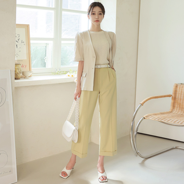 Natural Linen Puff No-collar Jacket