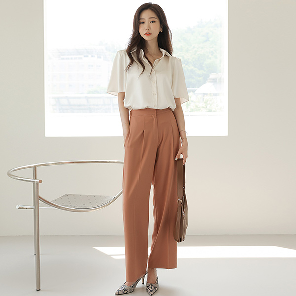 Open-Collar Office Peplum Blouse
