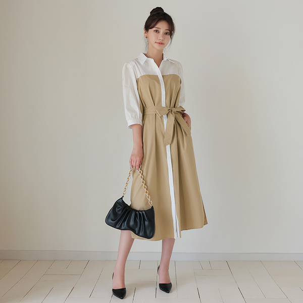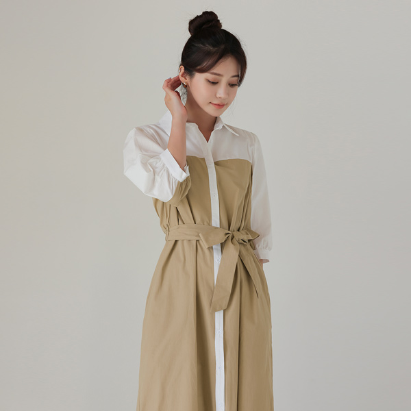 Color Combination Shirt layered Trench Dress