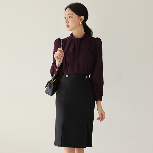 Half-Neck imitation Pintuck Line Blouse