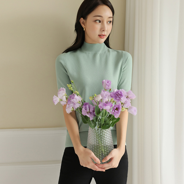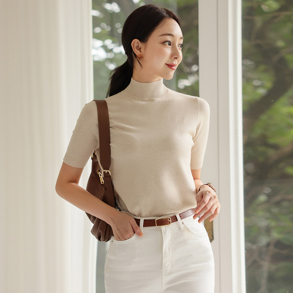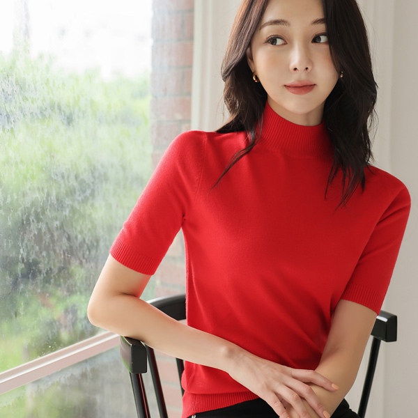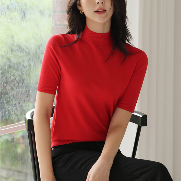 Biscos Half-Neck Short Sleeves Knit T-shirt