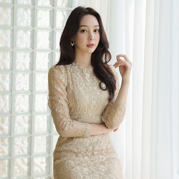 Chiffon layered Gold Lace Brooch
