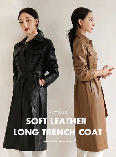 Soft Leather Long Trench Coat