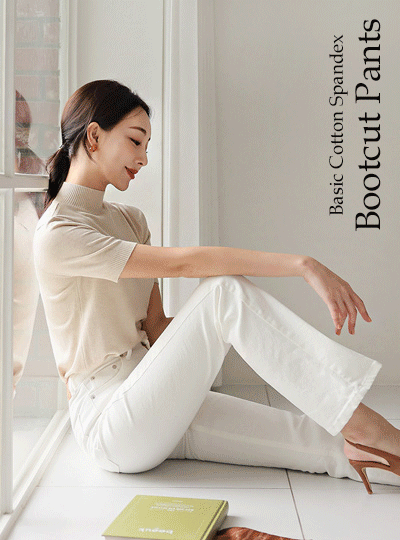 Basic Cotton Span Boot-Cut Pants