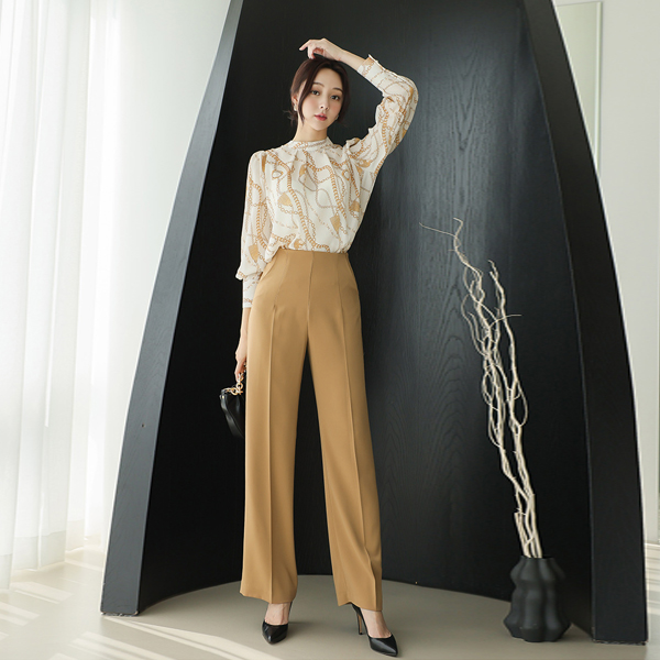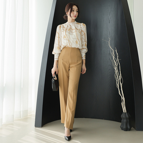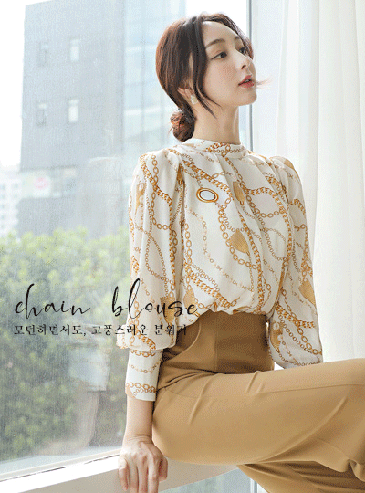 Luxury Gold Chain Shirring Half-Neck Blouse