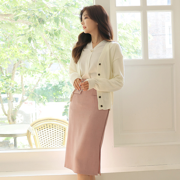 Pocket Trimming Side Center Front Vent H-line Skirt