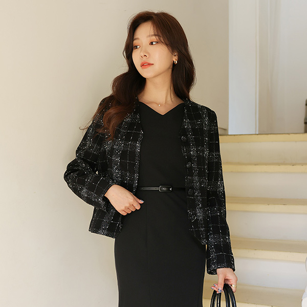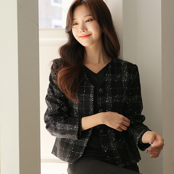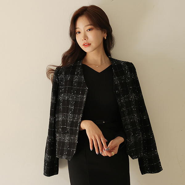 Rough Texture No-collar Single Harp Jacket