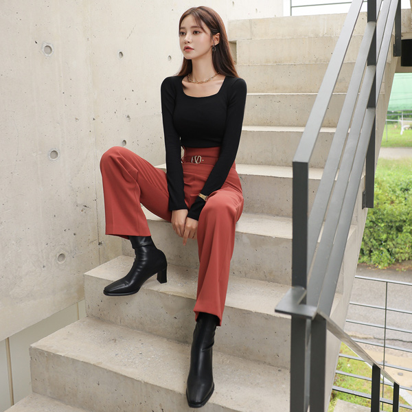 Basic Soft Corduroy Square Neck T-shirt