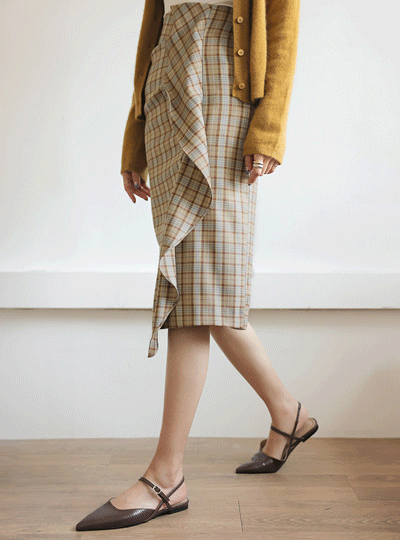 Classic Check Pattern Side Ruffle Skirt
