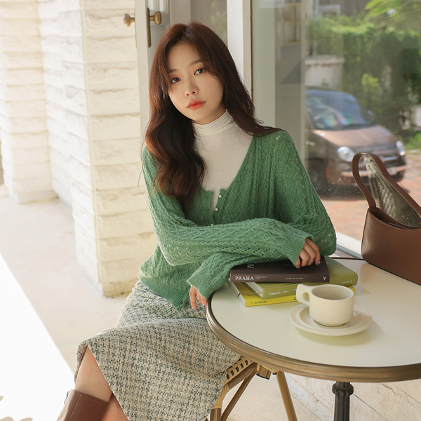 Cozy Pearl Point Diamond Wool Cardigan
