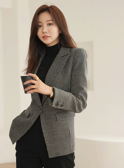 Classic One-Button Tailored Collar Check Jacket