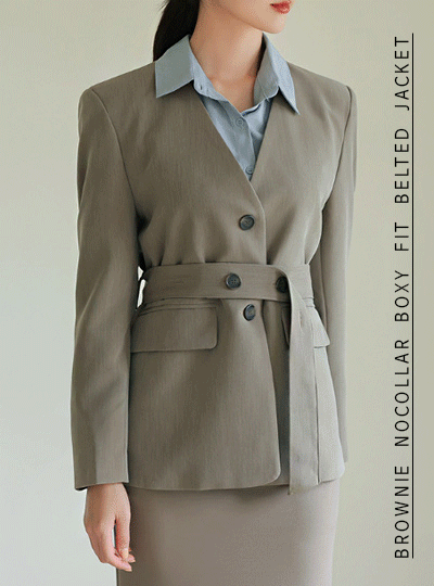Brownie No-collar Over Fit Belted Jacket