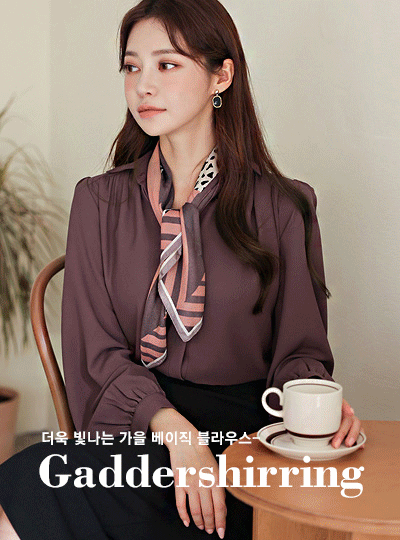 Gather Shirring Hidden Button Collar Blouse