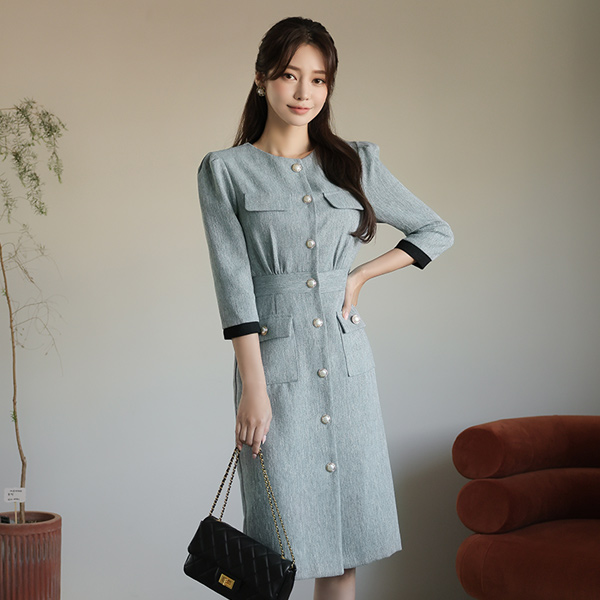 Black 플라워라인 Fresh-Water Pearl Earring