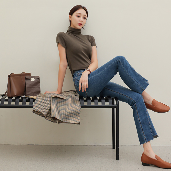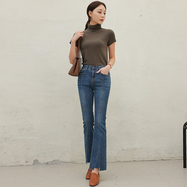 Stretchy Span Stretchy-Waist Cutting Boot-Cut Denim-Pants