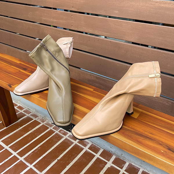 Stitch Point Leather Socks Peach Napping Ankle boots