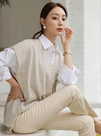 Drop Shoulder Wool-Cashmere Knit Vest