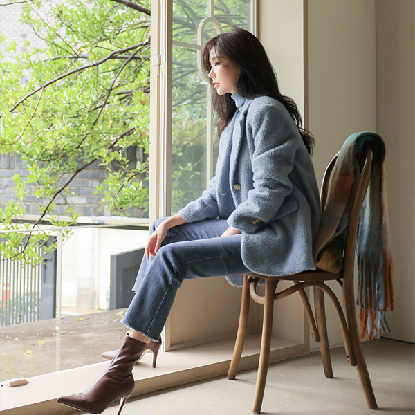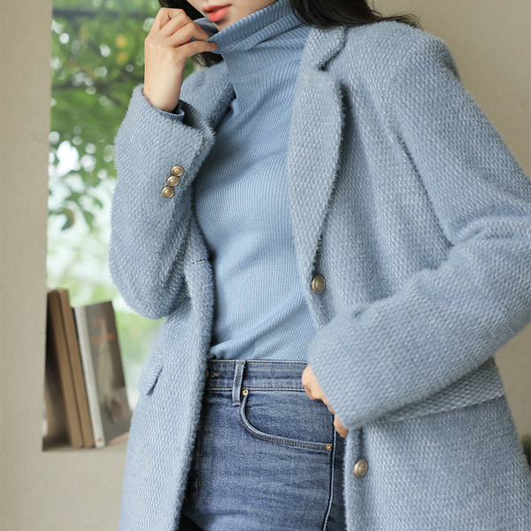 Soft Fabric Creamy Color Corduroy Wool Turtleneck