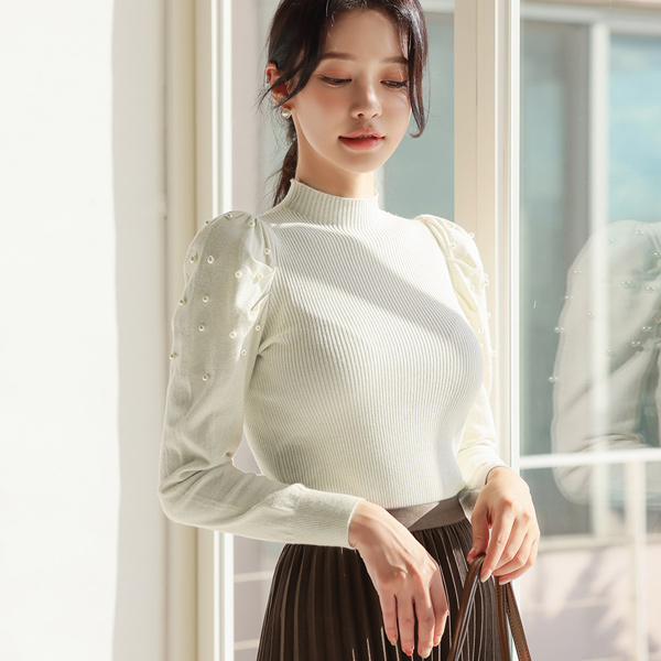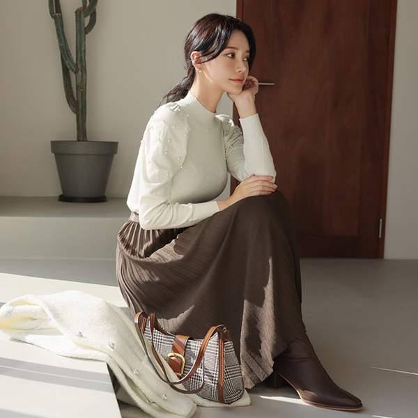 Creamy Bouclé-Wool Pearl Buttons No-collar Shot Jacket