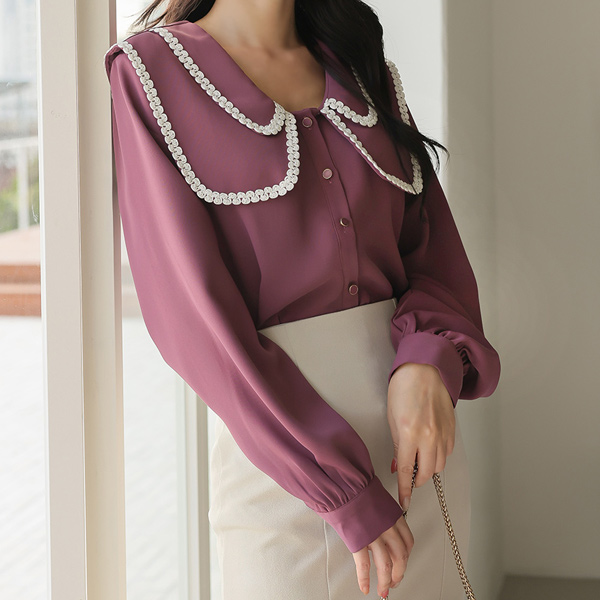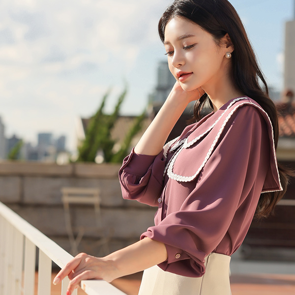 MABELLE Embroidery Trimming large Sailor Collar Blouse