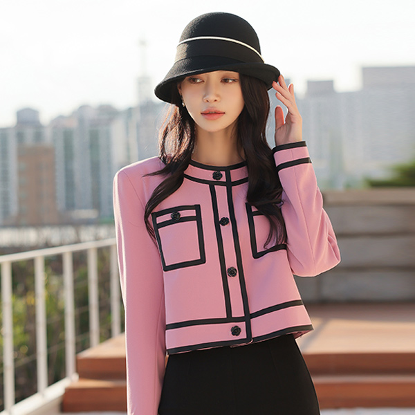 Romantic Coco Rose-Button Tapping Color Combination Jacket