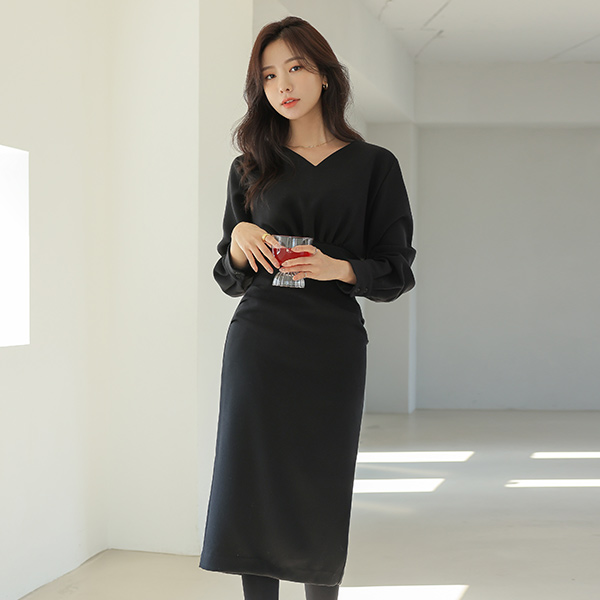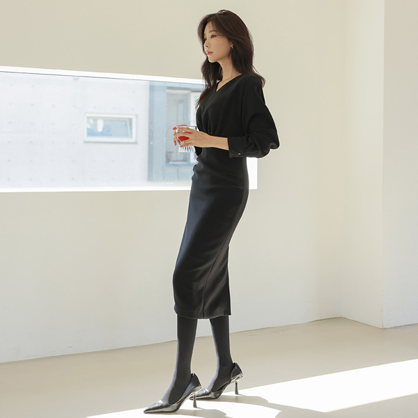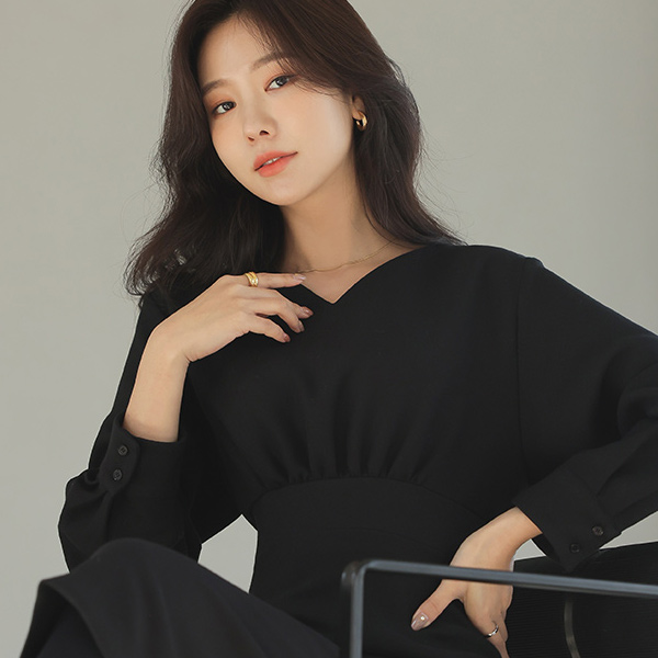 Elegance Heart Neck Shirring Point Midi Dress