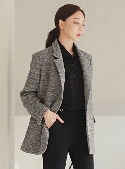 Herringbone Check One-Button Wool Jacket