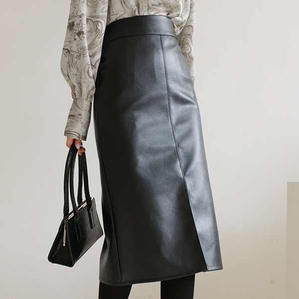 Wide Obi-Line Cutting Slit Leather Skirt