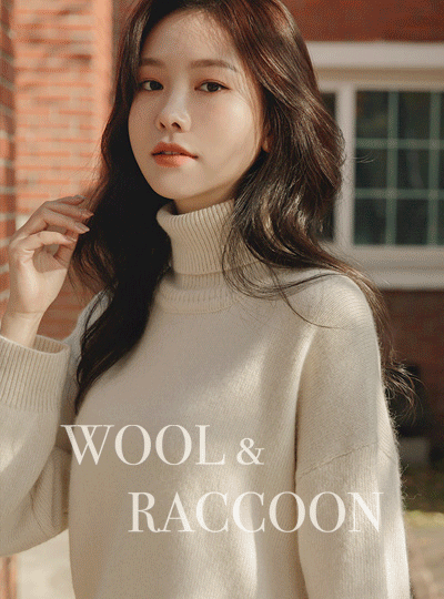 Cozy Wool&raccoon Belted Turtleneck Knit