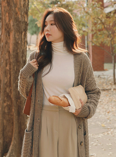 Autumn Mood Twisted Woven Mable Button loose fit Long Cardigan