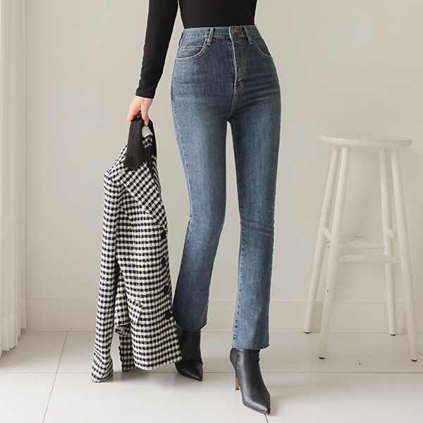Hound's-Tooth Belted Color Combination Collar Slim Wool Jacket