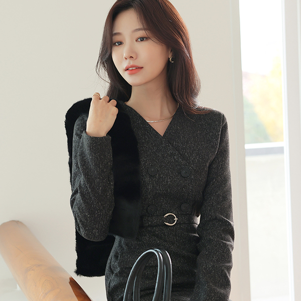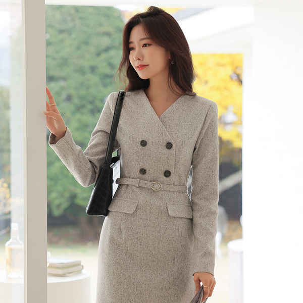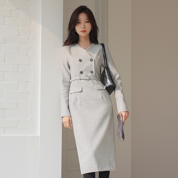 Modern Classic Bokashi Belted Wool Dress