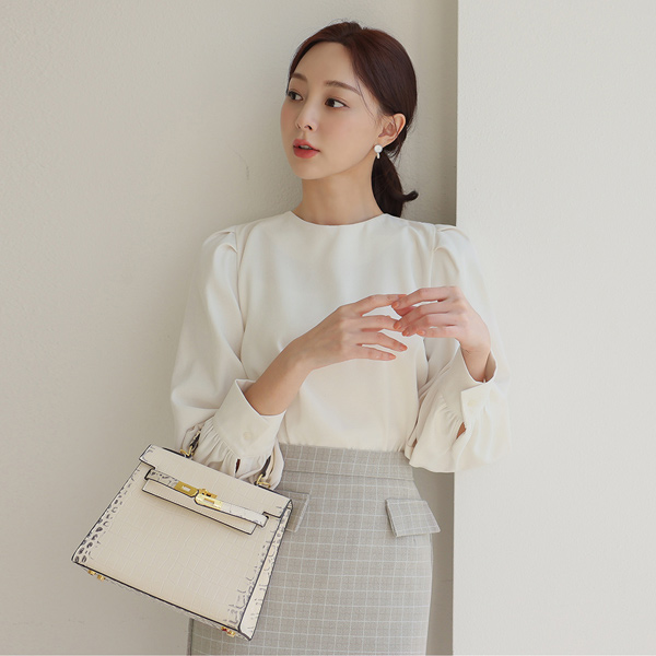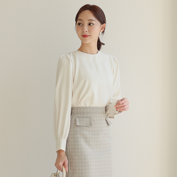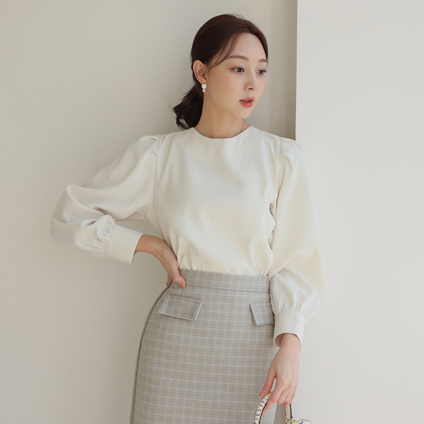 Peach Fleece Puff Round Blouse