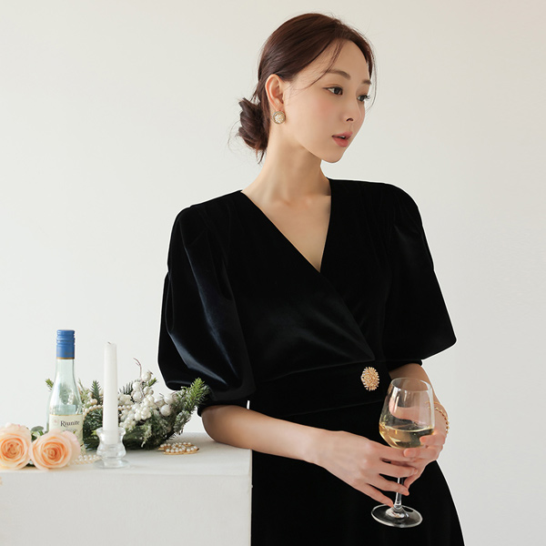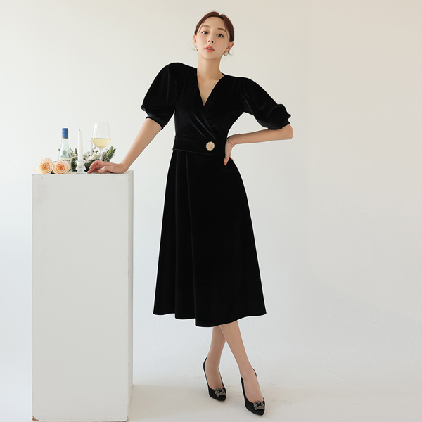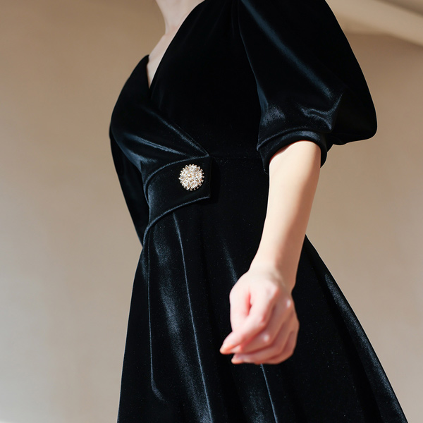 Princess Puff Sleeves Velvet Dress