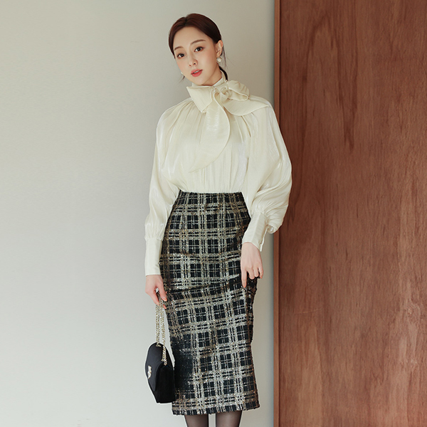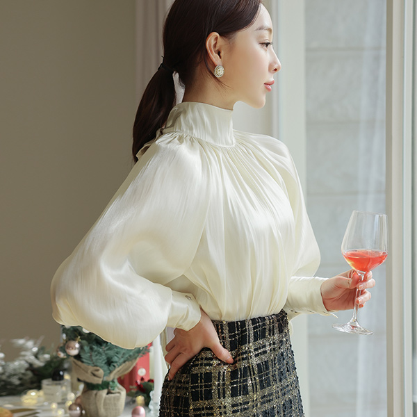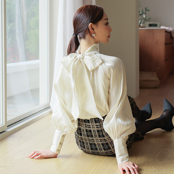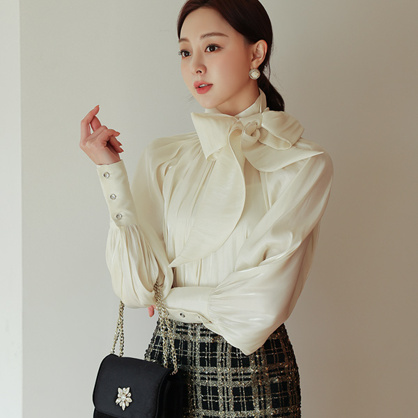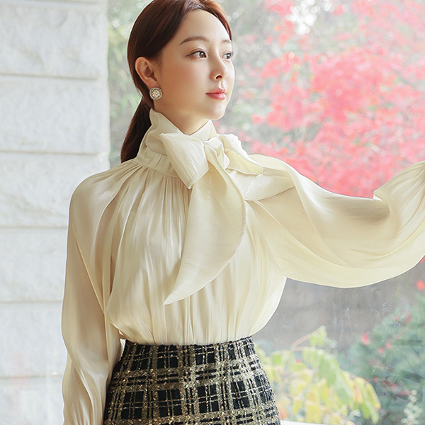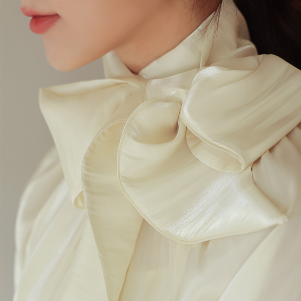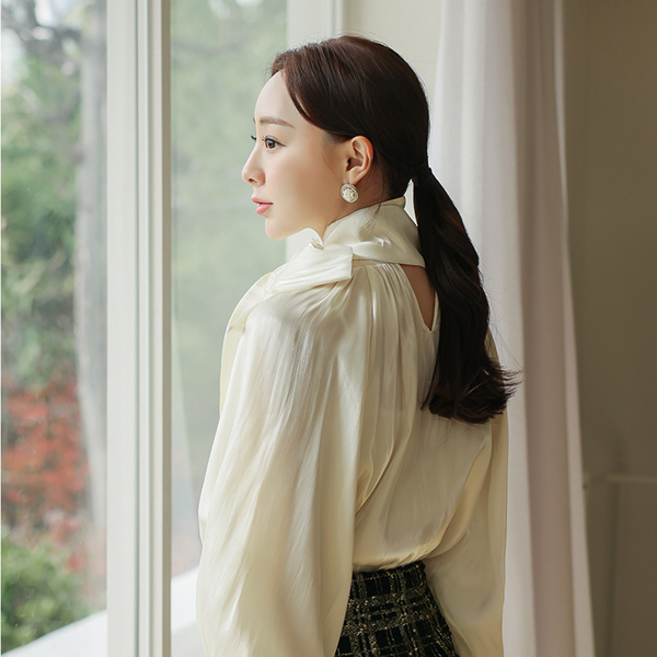Glossy Satin Two-way Scarf-Neck Blouse