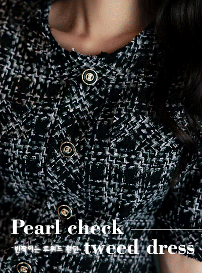 pearl Check Fringe Tweed Dress