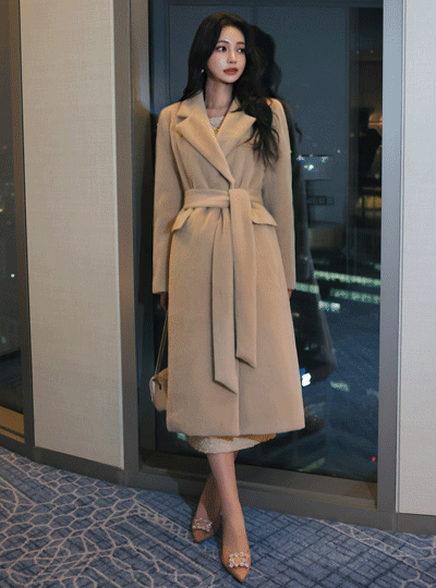 Mink Hidden Button Belted Wool Coat