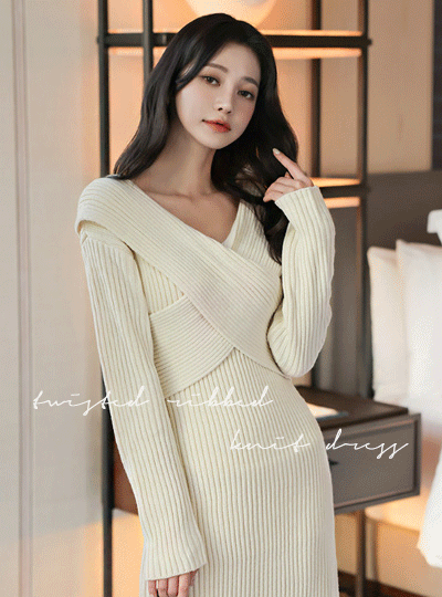 XSpace Twist V-Neck Corduroy Knit Dress