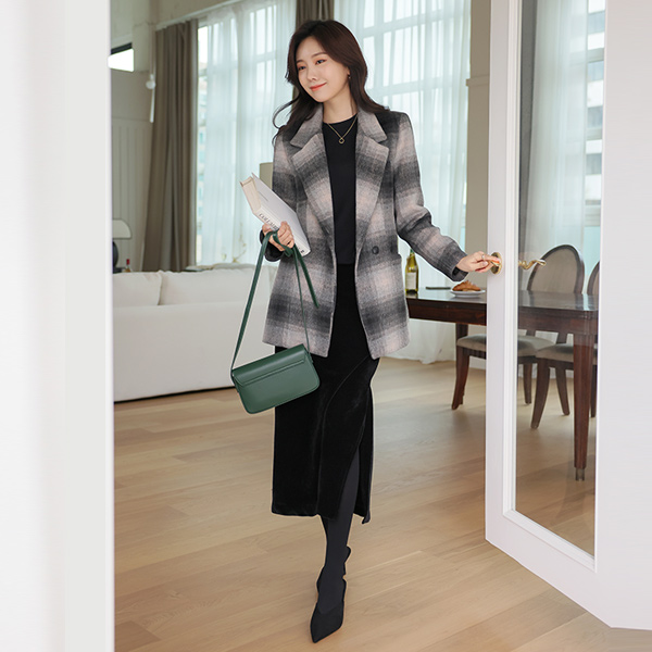 Mohair Check Pattern Point Winter Quilting Wool Jacket