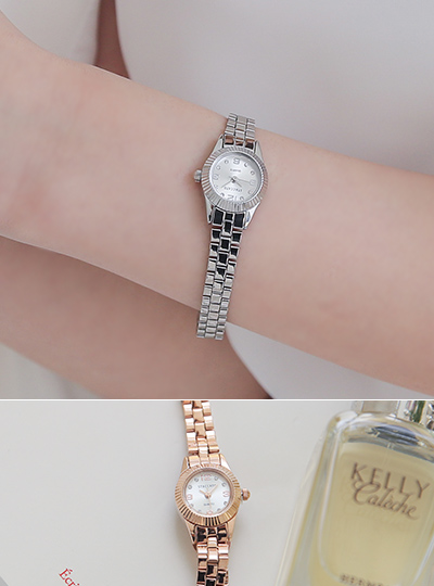 Mini Gold Ring Rounding Slim Cowhide Clock