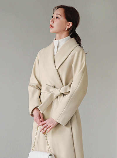 Shawl Collar Belted Wool Long Coat