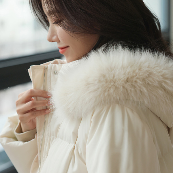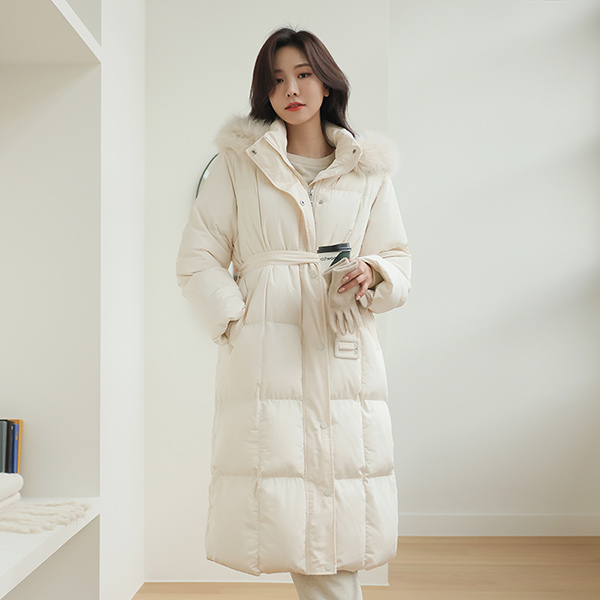 Real Fox Fur Square quilting Winter Maxi Wellon Long-Padded Jumper