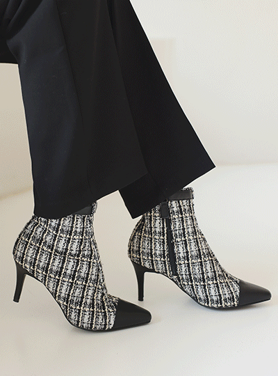 Leather Point Tweed Ankle Boots
