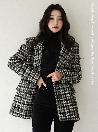 Gold pearl Tweed Antique Button Wool Jacket(quilted lining)