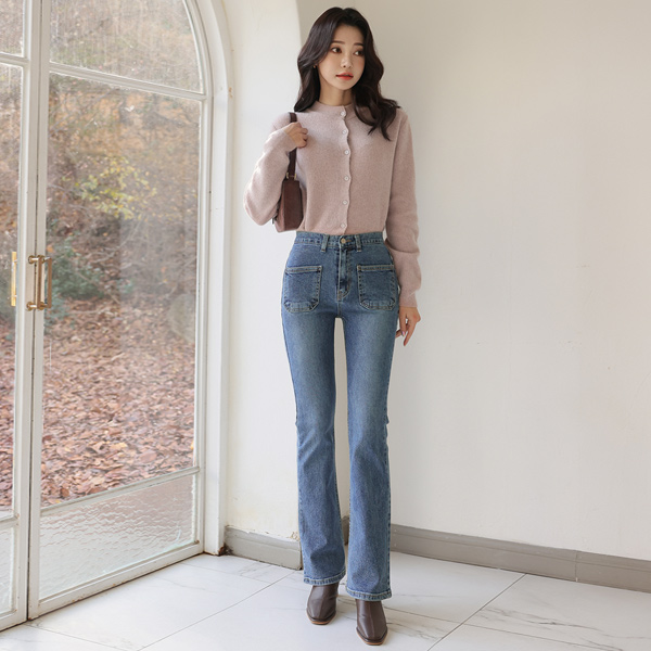 Soft Slim Corduroy raccoon Wool Cardigan Knit