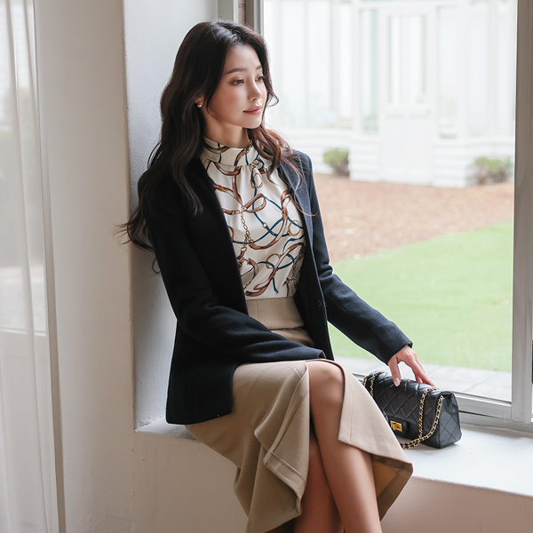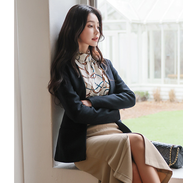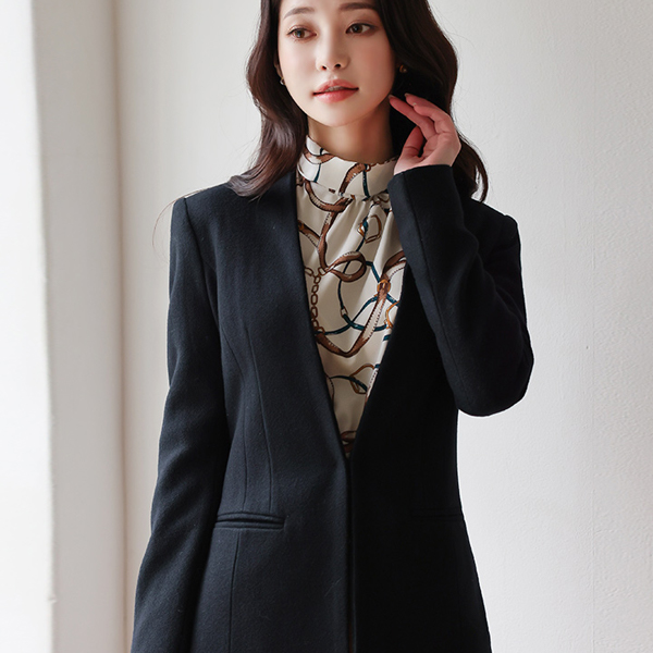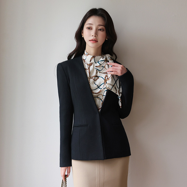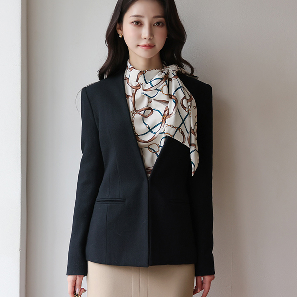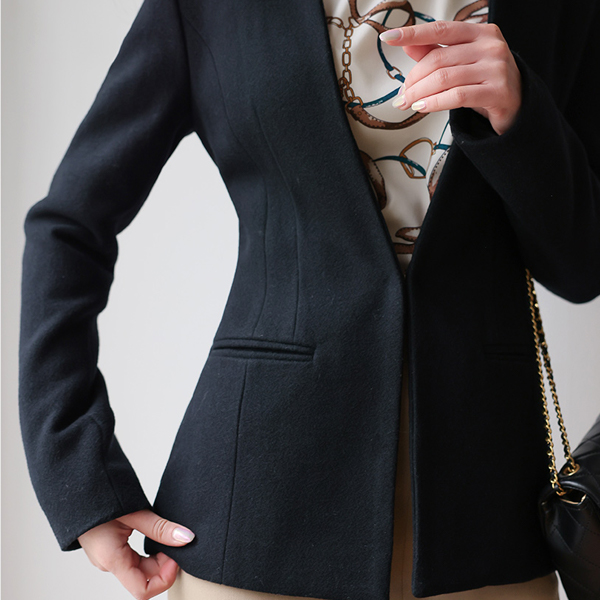No-collar Cutting-line Formal Wool Jacket