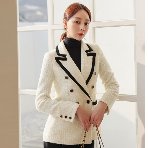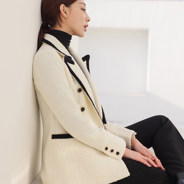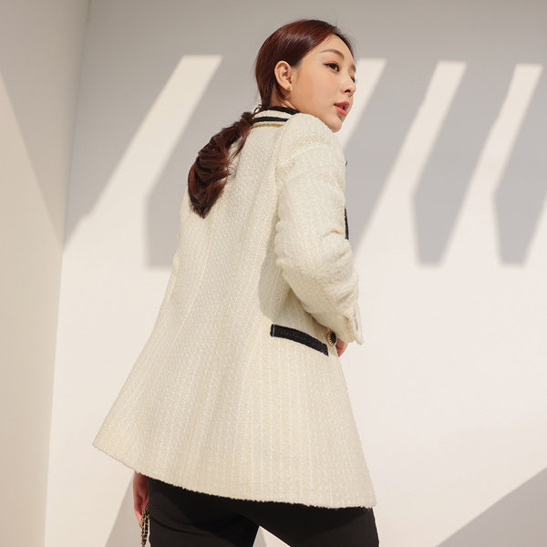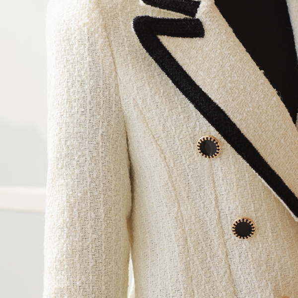 Color Combination Tweed Double-button Wool Jacket