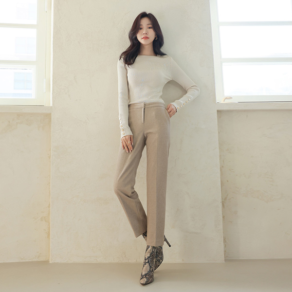 Comfortable Cheese Spandex Hems Slit Boot-Cut Pants(napping lining)